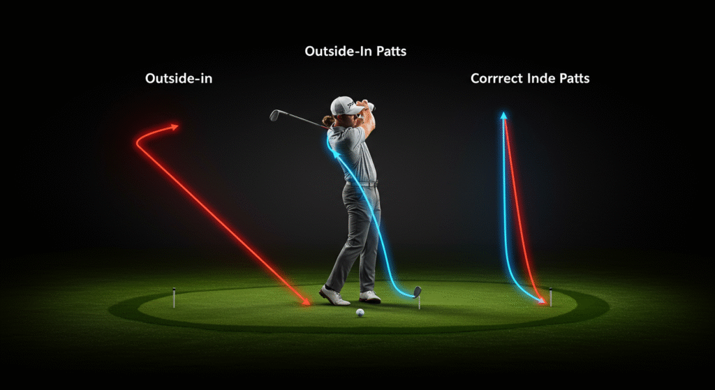 シャンクが発生する最も一般的で根本的な原因は、スイング軌道の異常にあります。クラブヘッドが正しい軌道を通らないことで、フェースの芯ではなくネック部分にボールが当たってしまうのです。スイング軌道の乱れは、主に二つのタイプに分けられます。